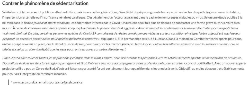 Article Corse Matin du Samedi 1er mai 2021